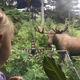 Here is a wonderful video from the Minnesota Land Trust site showing a family of swans feeding. The mandatory moose for August is from Don Rearden. He posted this picture of a big guy out his window on the Anchorage hillside which should win some award.