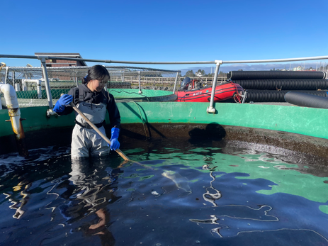 Granddaughter Mary doesn’t seem to have taken that class yet. She was named Student of the Month at Mt. Edgecumbe High School and was featured in several publications. She is getting all A’s in class. On the right below she is netting salmon at a hatchery where she is a weekend intern.